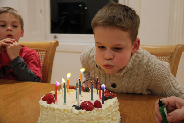 We ended up having a little family party instead. He picked out a delicious Chantilly cream and berry cake from Whole Foods. We sang to him and he made his wish. No - you’re not getting a little dog here!